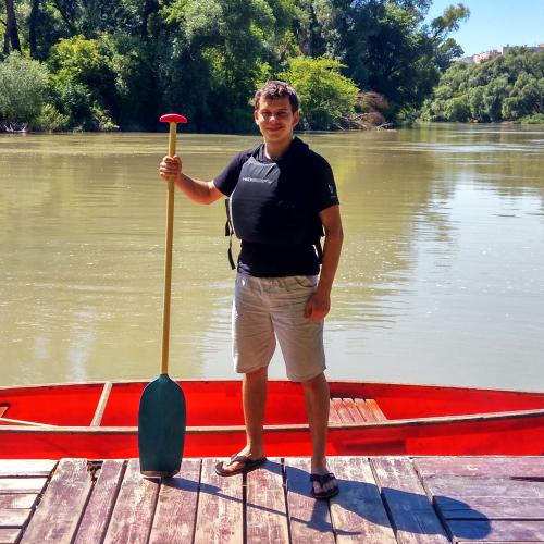 Základný výcvik, nalodenie sa, pádlovanie dole Dunajom, okolo obeda prenáška pri